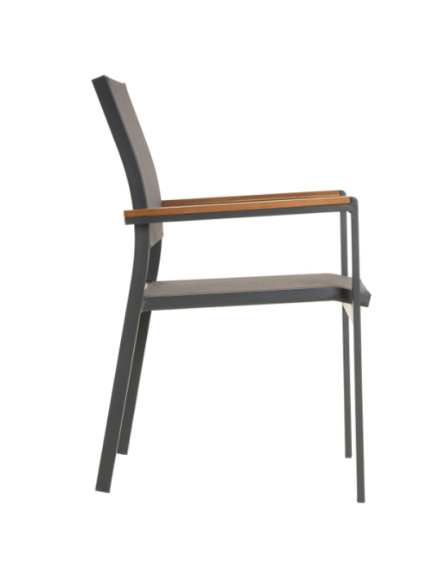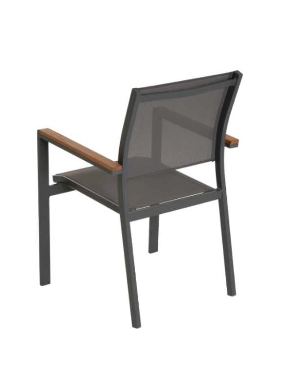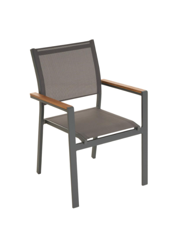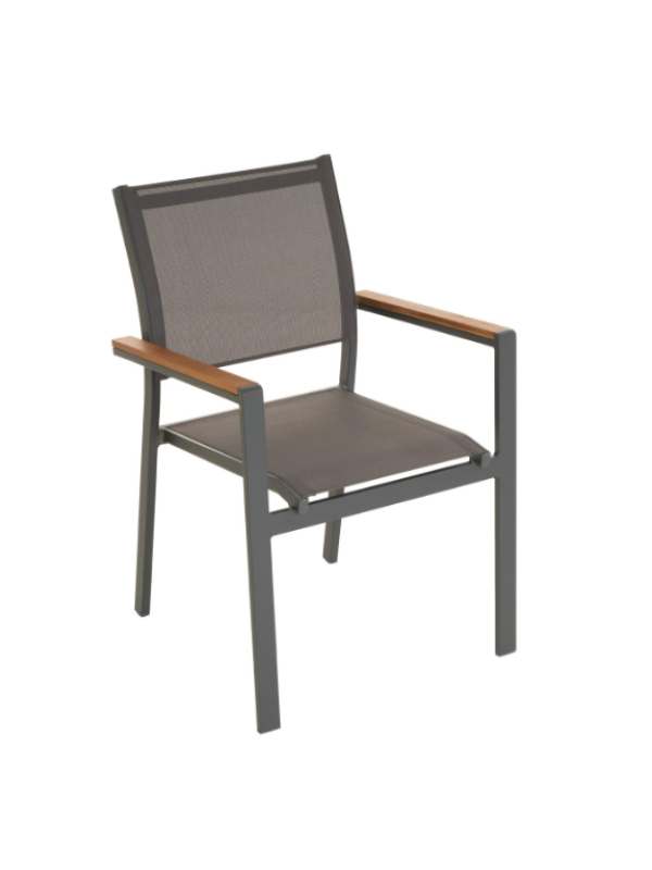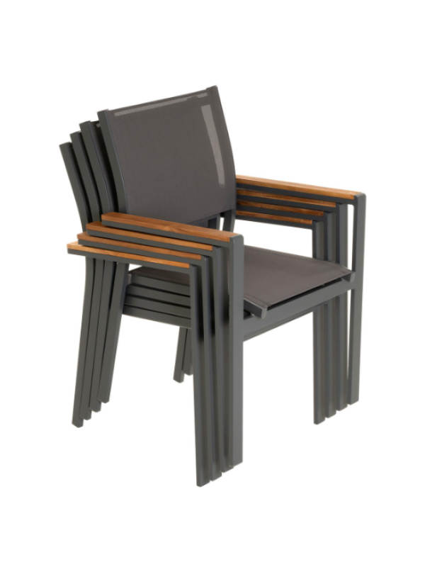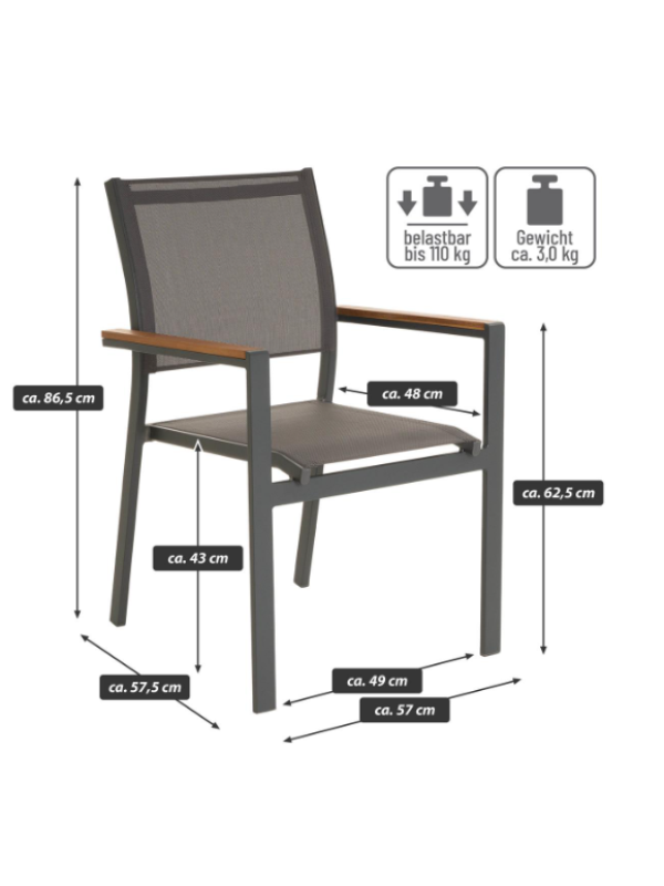 Stohovateľná záhradná stolička, ktorú, samozrejme, môžete využiť aj ako kreslo pre hostí, kreslo na terasu, balkónové kreslo alebo kempingové kreslo. Stoličky sú veľmi praktické a môžete na nich veľmi pohodlne sedieť aj dlhú dobu. Skombinujte tieto stoličky s našimi ľahko udržiavateľnými a vonkajšími stolmi. Týmto spôsobom si môžete nakonfigurovať svoj vlastný jedálenský set. V závislosti na tom, koľko miesta máte, môžete na seba naskladať viac stoličiek – na druhú stranu sada stoličiek zaberie iba miesto jednej stoličky. Najmä ak stoličky používate len príležitostne, je možné ich pre úsporu miesta ľahko uložiť do kôlne alebo pivnice. Stoličky sú robustné, ale ľahké a je možné ich bez problémov prepravovať ako komplet. Hnedé područky dodávajú stoličke veľmi zvláštny šmrnc.