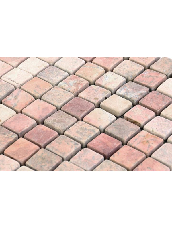 Kvalitná mozaika tvorená zo štvorcových kúskov lešteného mramoru v rôznych odtieňoch červenej. Mozaika je nalepená na sieťke, a tak sa s ňou ľahko obkladajú aj väčšie plochy. Je určená k použitiu v interiéri aj exteriéri - ideálna na obkladanie stien aj podláh, veľmi pekne vynikne napr. v kúpeľni. Čo sa týka možných škvŕn na obkladoch, odporúčame vykonať po obložení impregnáciu ako ochranu pred nechcenými škvrnami. Je potrebné použiť špárovaciu hmotu na pravý kameň. Cena je uvedená za 1 m2.