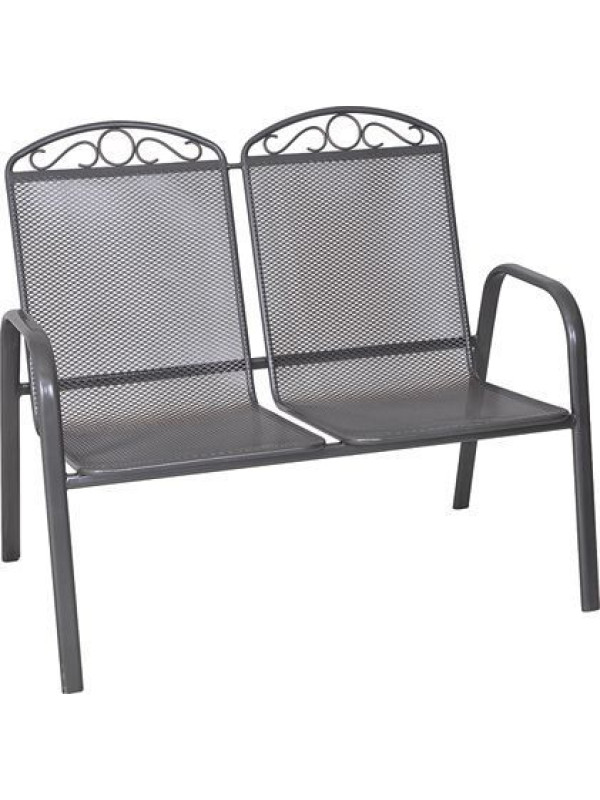 Záhradná lavica vyrobená z kovu s drôtenou výplňou. Hornú časť lavice zdobí veľmi pekný kovový ornament, ktorý robí lavicu zaujímavejšou. Lavica je dvojsedadlová.