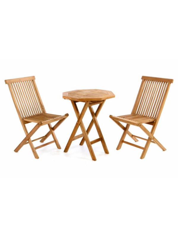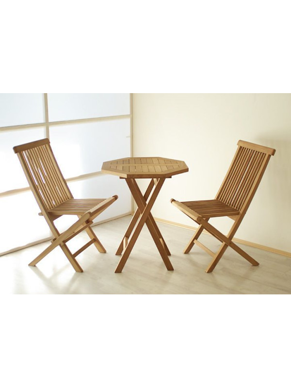 Tento záhradný nábytok najvyššej kvality je veľmi stabilný a ideálny pre pohodlné posedenie napríklad na terase alebo balkóne. Stoličky aj stôl sú vyrobené z kvalitného masívneho teaku s dôrazom na starostlivé spracovanie. Teakové drevo je veľmi húževnaté a odolné voči poveternostným vplyvom, preto sa teší veľkej obľube práve u výrobcov záhradného nábytku.