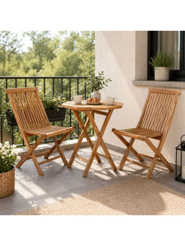 Luxusný balkónový set z teakového dreva, 1 stôl + 2 skladacie stoličky