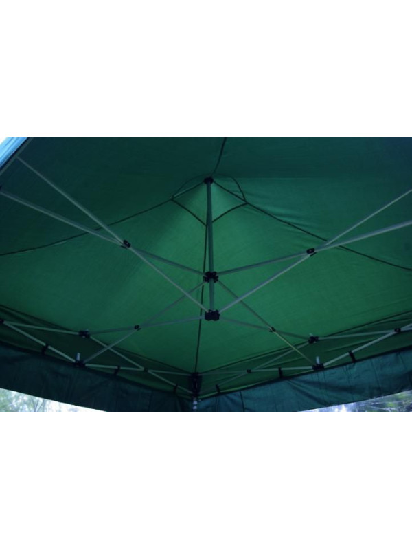 Tento záhradný stan je vhodný na záhradné oslavy, pohodlné posedenie, môžete ho využiť na firemný večierok aj na stánkový predaj. Nožnicová konštrukcia Vám zaručí jednoduché zloženie aj rozloženie stanu - stačí iba konštrukciu roztiahnuť. Záhradný stan Vás ochráni pred priamym slnečným žiarením, nepríjemným dažďom alebo iným nepriaznivým počasím. Stan je kompletne uzavretý pomocou štyroch bočných stien s oknami. Bočné steny sú k nohám pripevnené pomocou suchých zipsov a k hornej hrane konštrukcie pomocou háčikov. Nohy stanu sú teleskopicky polohovateľné a majú plastové pätky pre ukotvenie do zeme.