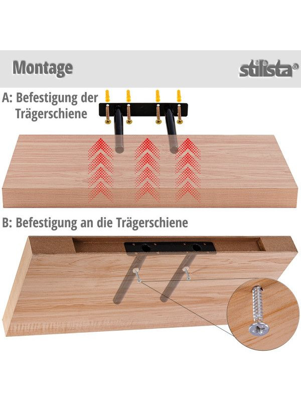 Moderná nástenná polica značky Stilista produktovej rady VOLATO sa vďaka levitujúcemu efektu stane nádherným doplnkom Vašej izby. Vďaka maximálnej nosnosti 10 kg ju môžete použiť takmer všade. Či už na dekoračné predmety v obývacej izbe, na kuchárske knihy v kuchyni, na učebnice v detskej izbe alebo na potraviny v špajzi.