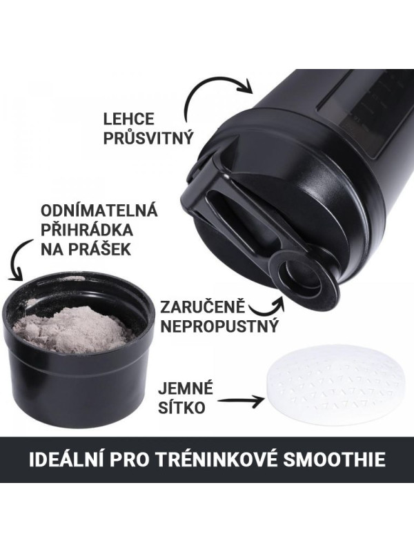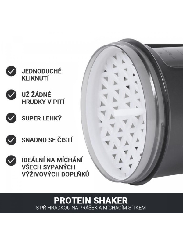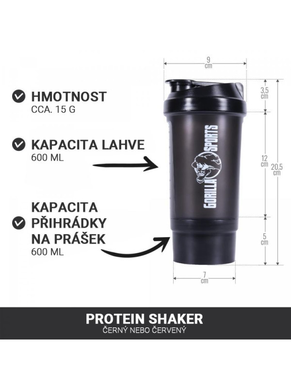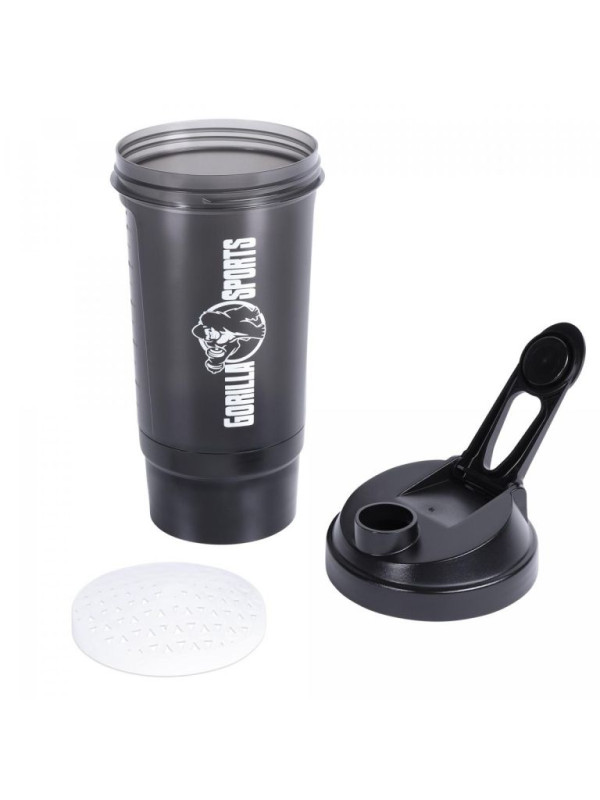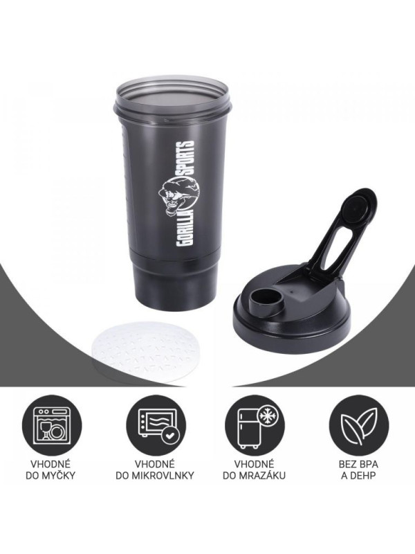 Gorilla Sports Shaker s priehradkou, 500 ml čierny