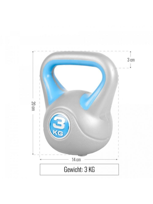 Gorilla Sports Kettlebell činka, vinylová, tyrkysová, 3 kg