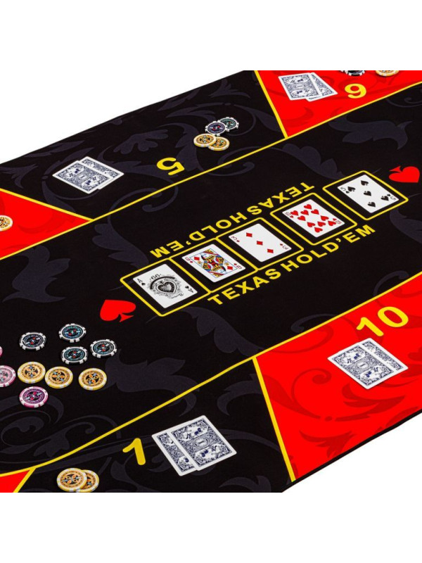 Skladacia pokerová podložka, červená/čierna, 200 x 90 cm