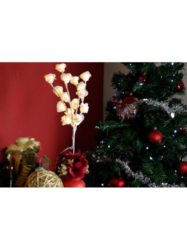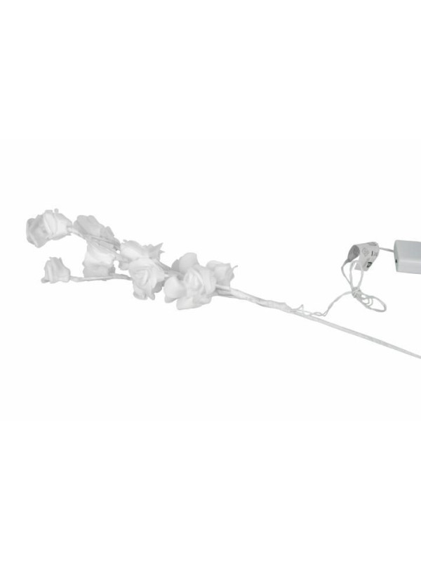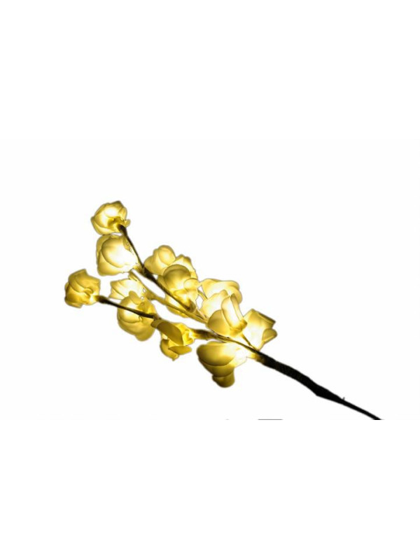Elegantná vetvička s precízne spracovanými ružičkami. Vďaka 16 LED diódam, ktoré svietia teplo bielym svetlom, prinesie táto dekorácia do Vášho domova prekrásne kúzlo. Vetvička sa delí na ďalšie 4 časti. Vďaka napájaniu na batérie nebudete musieť riešiť prístup k el. zásuvke. Iba pre použitie v interiéri.
