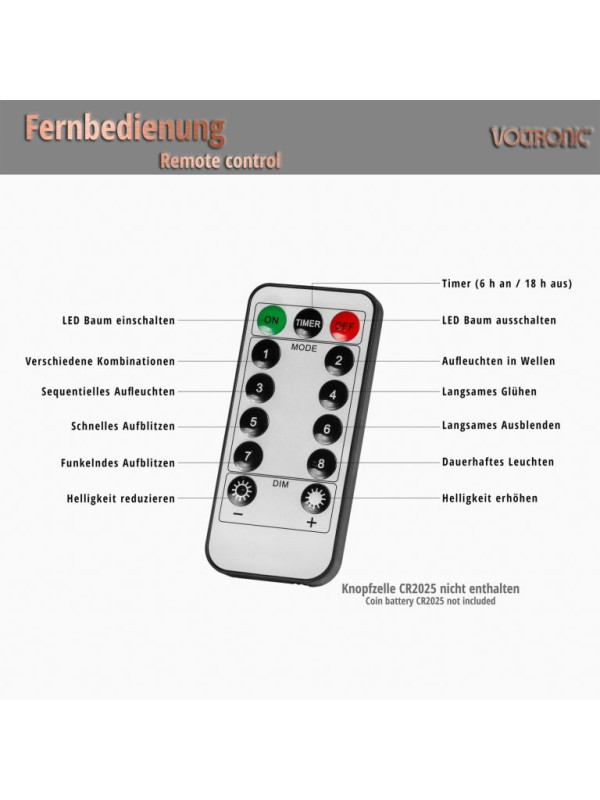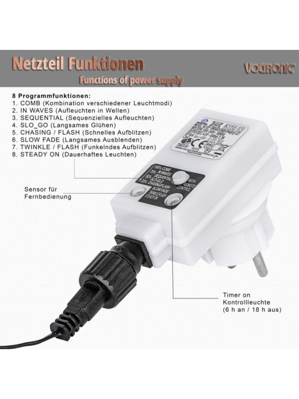 VOLTRONIC LED breza,8 funkcií z ovládačom,teplá biela,180 cm