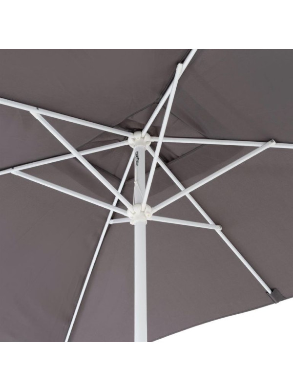 Poťah slnečníka je veľmi odolný. Pomocou integrovanej ručnej kľuky možno slnečník pohodlne otvoriť a zatvoriť bez námahy. Integrovaná veterná kapucňa stúpa vo vetre a znižuje tak nafúknutie, prevrátenie a poškodenie slnečníka.