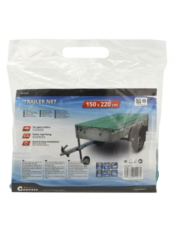 Sieť je zhotovená z odolného polypropylénu zelenej farby a je po obvode vybavená pružným lanom pre jednoduché a rýchle upevnenie a napnutie. Veľkosť siete musí zodpovedať rozmerom prívesu, táto sieť má rozmery 150 x 220 cm s okami štvorcového tvaru s rozmermi 4 x 4 cm.