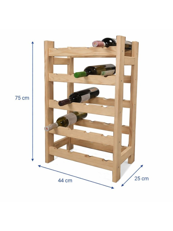 - Stabilné borovicové drevo s hrúbkou 2 cm: pevná konštrukcia a bezpečné uloženie každej fľaše.