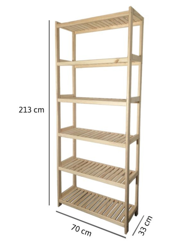 Regál je vyrobený z borovicového dreva bez povrchovej úpravy – vynikne tak prirodzená kresba dreva a máte možnosť ho podľa potreby nalakovať tak, aby ladil s vaším interiérom. Každá polica unesie až 25 kg, takže zvládne aj ťažšie predmety a každodenné zaťaženie. Montáž je rýchla a jednoduchá, všetko potrebné je v balení a nepotrebujete žiadne náradie. Regál sa dodáva rozložený pre ľahkú prepravu.