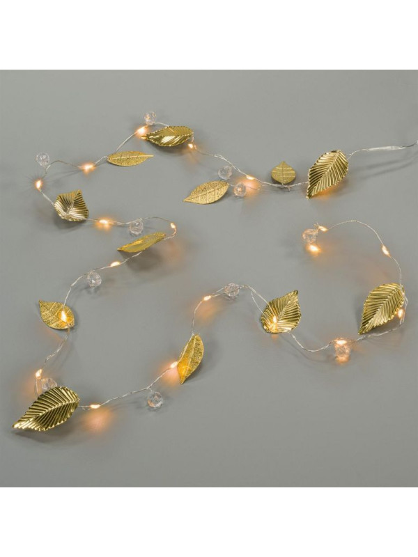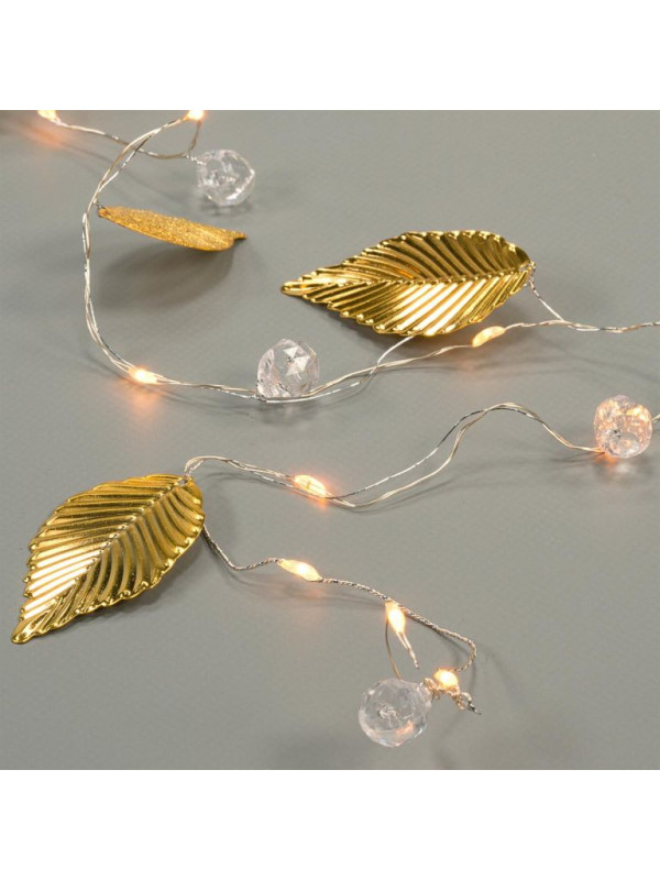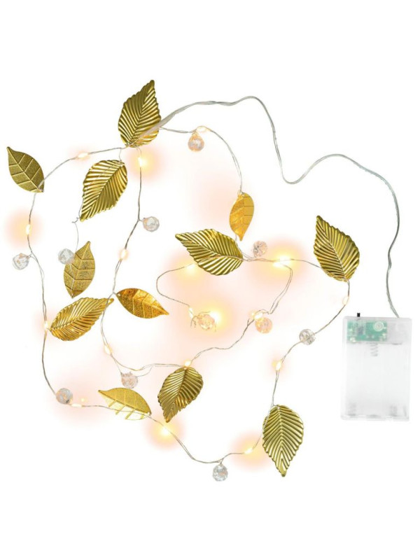 Osvetlenie perly a zlaté listy, 20 LED, teplá biela