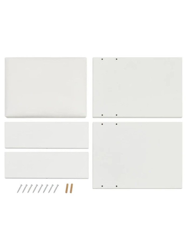 - Materiál: biele laminované drevené dosky, vankúš z umelej kože