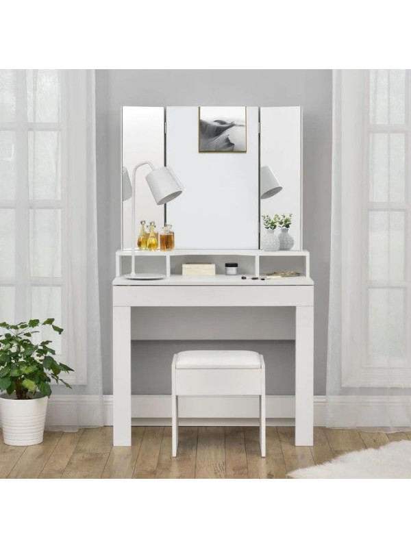 Taburet biely ku kozmetickému stolíku 42 cm s čalúnením