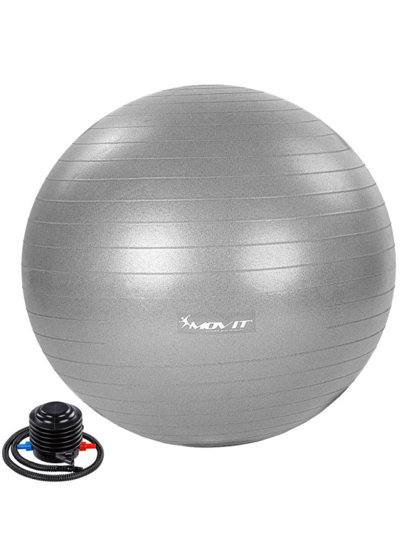 MOVIT Gymnastická lopta s nožnou pumpou, 65 cm, sivá