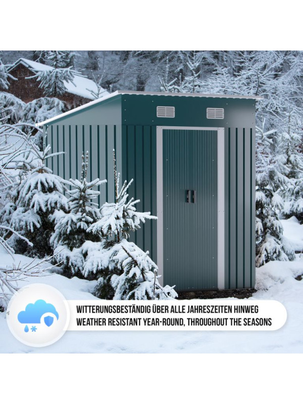 Vďaka povrchu z praktickej pocínovanej ocele a odolnosti proti poveternostným vplyvom si tento záhradný domček poradí s každou výzvou, ktorú naň počasie vrhne. Zabudnite na hrdzavenie a starosti s údržbou! Jeho odolnosť voči UV žiareniu ho chráni pred vyblednutím a zaisťuje, že vaše cenné nástroje zostanú v perfektnom stave.