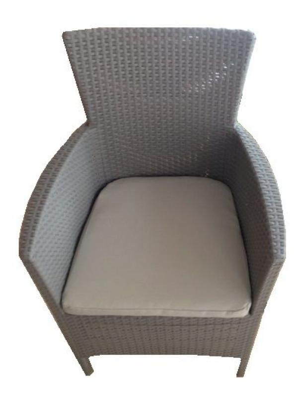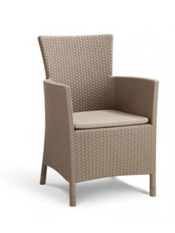 Plastové kreslo (imitácia ratanu) v capuccino farbe + krémová poduška. Veľmi komfortné kreslo vhodné do vonkajších aj vnútorných priestorov.