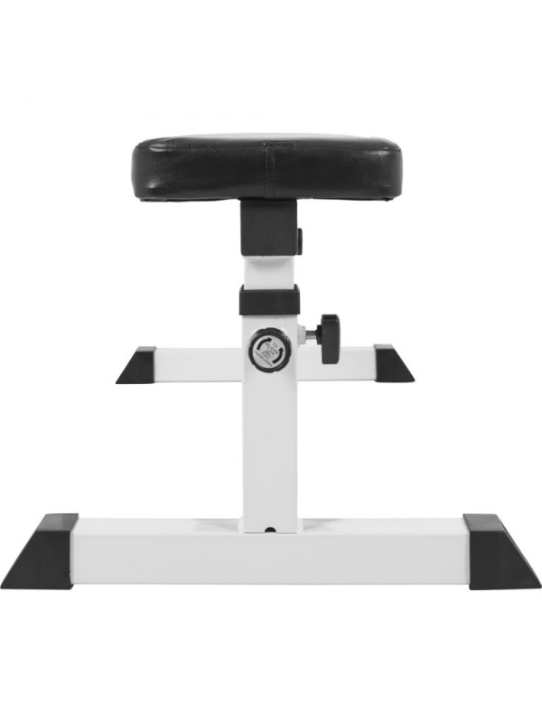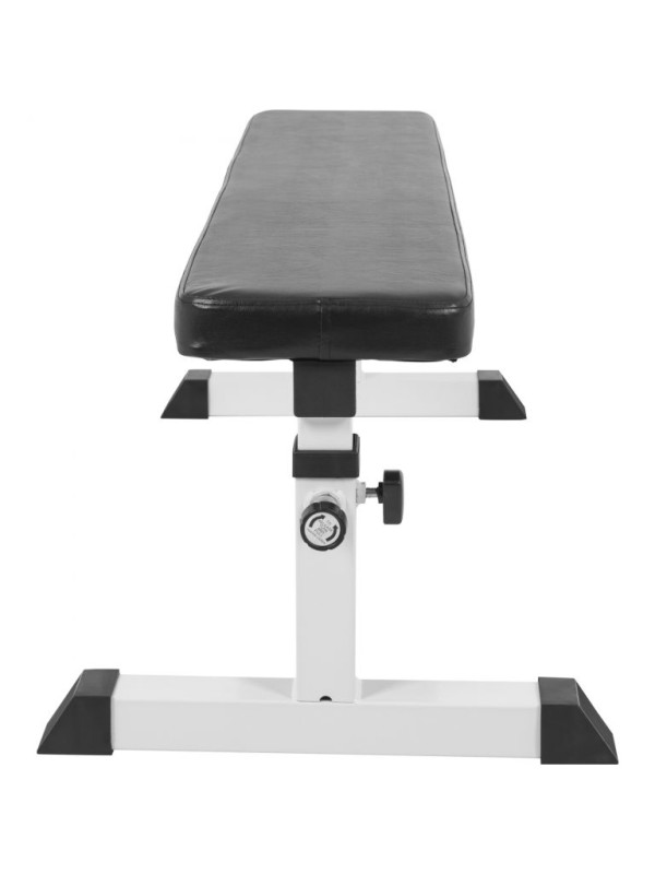 Vďaka štyrom nastaviteľným výškam je toto klasické tréningové zariadenie vhodné pre všetky veľkosti postavy. Prostredníctvom rôznych cvikov s činkami a závažiami precvičíte hrudník, paže, chrbtové svaly, ramená aj brucho. Nastaviteľná plochá lavica s robustným rámom z bielej ocele vydrží naozaj veľa, zatiaľ čo nohy s protišmykovými gumovými krytkami poskytujú stabilnú oporu. Pomocou rýchloupínacej skrutky si môžete nastaviť výšku. Robustné a ľahko udržiavateľné sedadlo z čiernej imitácie kože poskytuje ideálny tréningový povrch.