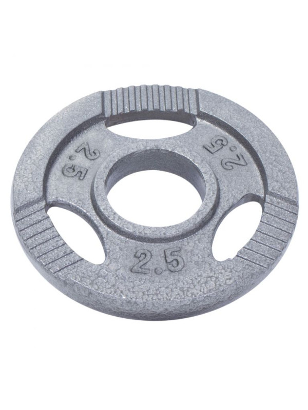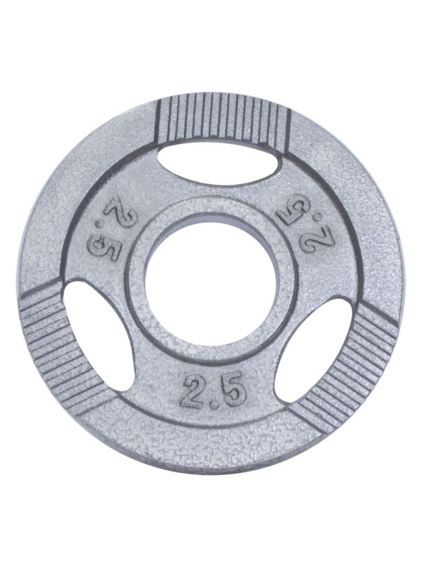 Liatinový činkový kotúč GRIP 50 mm v striebornej farbe a vo váhach 1,25 kg, 2,5 kg, 5 kg, 10 kg, 15 kg až 20 kg