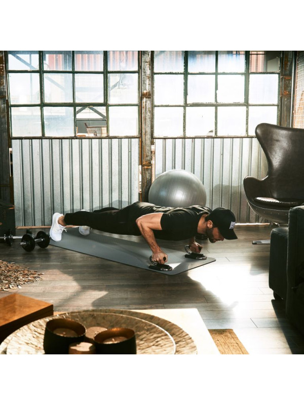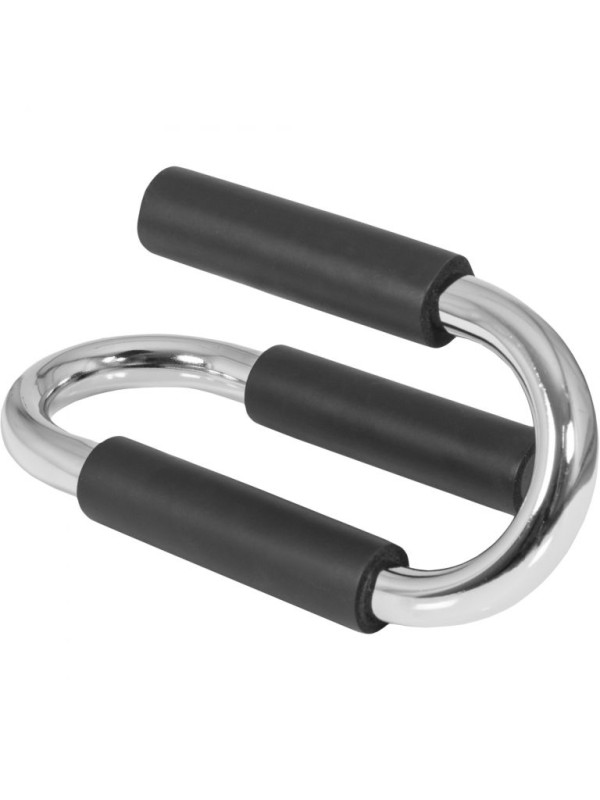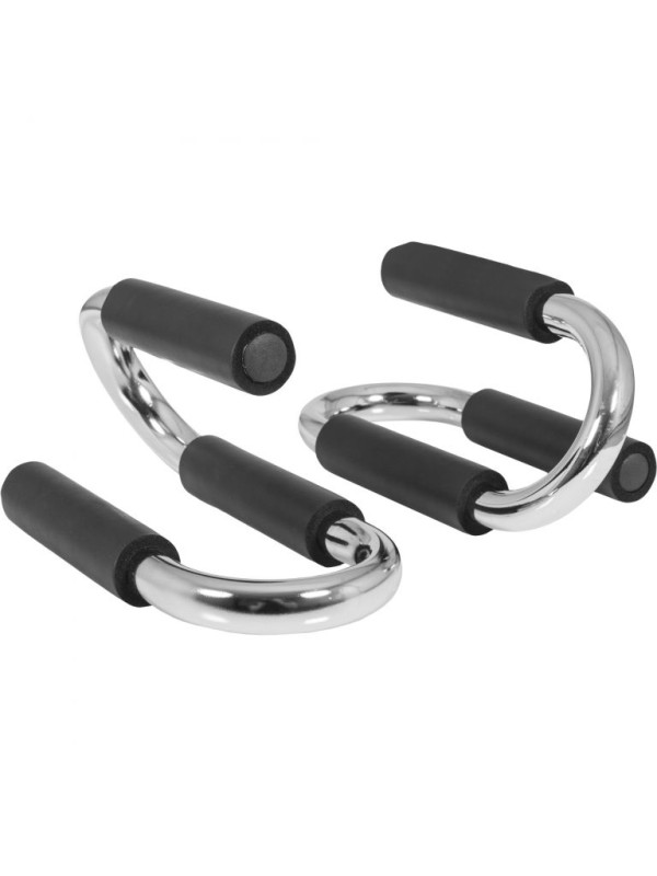Okrem bežných klikov s rukami vedľa ramien s touto pomôckou môžete cvičiť aj ďalšie typy. Rukoväte tiež poskytujú dobrý úchop pre asymetrické kľučky s jednou rukou pri tele a druhou natiahnutou do strany. Ďalšie variácie vznikajú zámerným vyrovnávaním rukovätí pozdĺžne alebo priečne. Pomôcka Vám umožní udržať Vaše zápästie rovno pri tréningu. To je pohodlnejšie a uľaví sa kĺbom. Ďalšou výhodou použitia týchto rukovätí je väčší rozsah pohybu od horného otočného bodu k podlahe. Výsledkom je efektívnejší tréning – s rovnakým množstvom času! Rukoväte sú chrómované a opatrené protišmykovými úchopmi. Gumové krytky na nohách chránia podlahu.