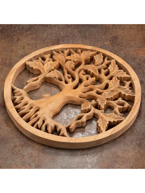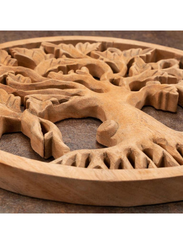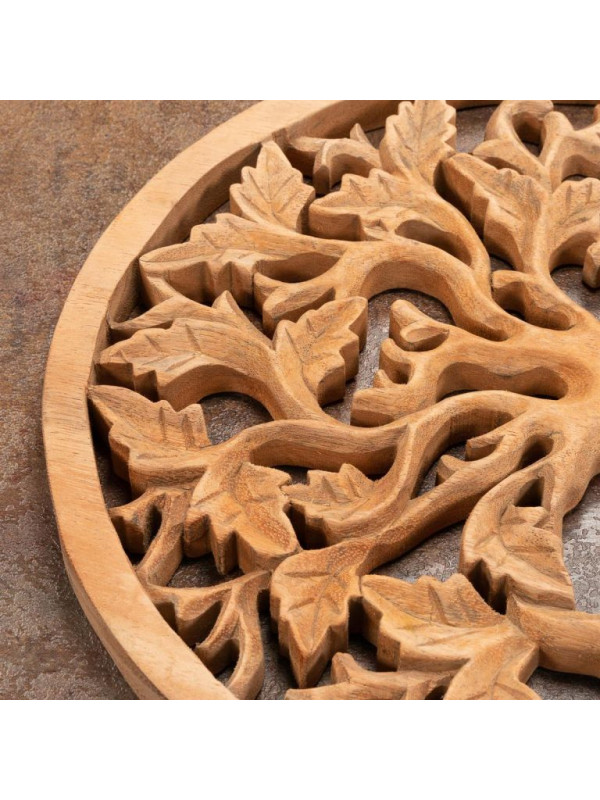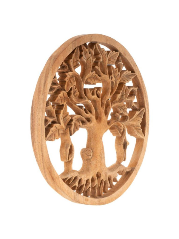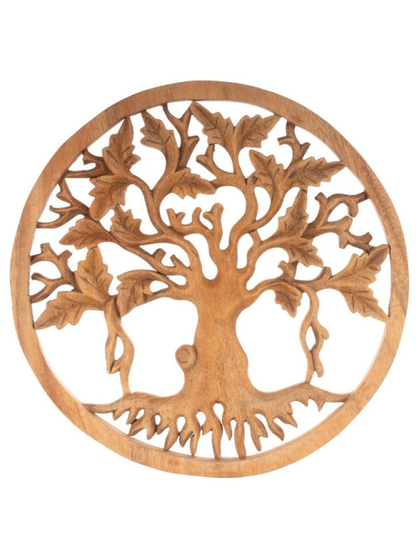 Motívom je strom života alebo strom priania „Kalpataru", rozšírený symbol a mýtický motív v mnohých náboženstvách. V závislosti na kultúre a náboženstve znamená plodnosť, spojenie medzi nebom a zemou alebo tiež múdrosť, silu a dlhovekosť. Samotná nástenná dekorácia vyžaruje prirodzenú silu a pokoj. Strom života patrí k mytológii mnohých národov a je prastarým symbolom vesmírneho poriadku. Táto dekorácia je ručne vyrezávaná a leštená.