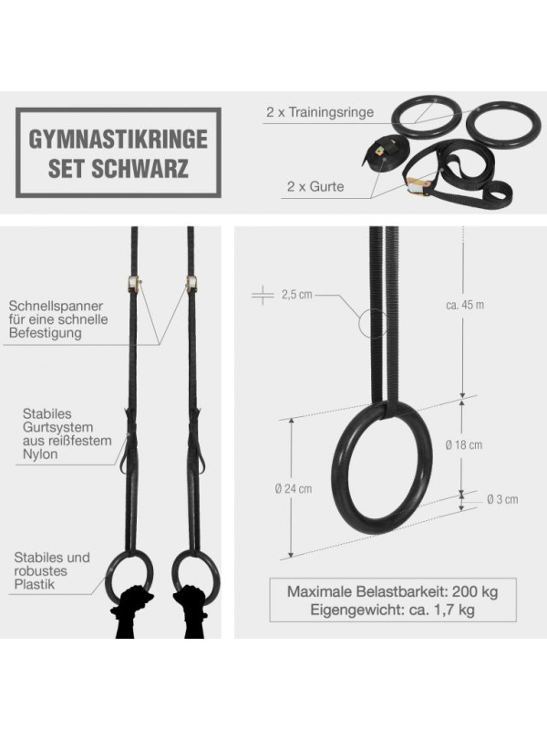 Gorilla Sports Gymnastické kruhy sada, čierne