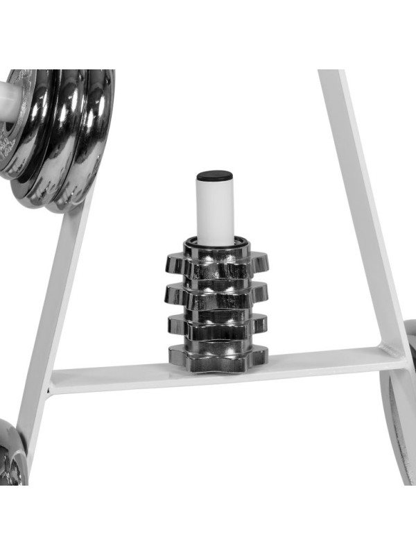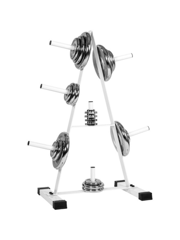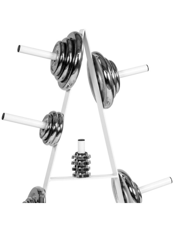 S týmto štýlovým stojanom na závažia si udržíte v posilňovni dokonalý poriadok a bezpečnosť. Vaše závažia budú mať konečne svoje miesto a budete ich mať kedykoľvek po ruke. Stojan je vybavený siedmimi držiakmi a umiestniť na neho môžete závažia, ktoré majú vnútorný priemer do 30 mm. Má zaoblené hrany a nohy stojanu sú vybavené gumovými podložkami, ktoré zabránia poškrabaniu podlahy.