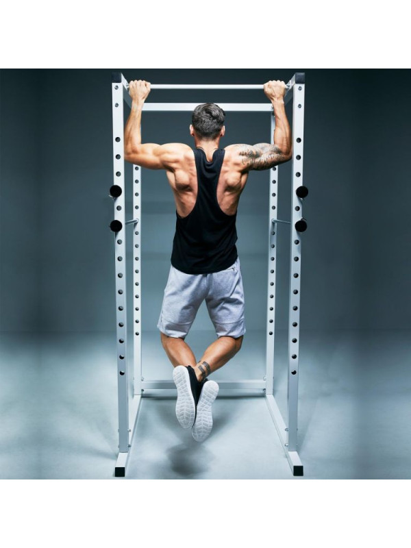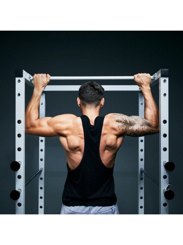 Klietka v bielej farbe od spoločnosti Gorilla Sports ponúka ideálne riešenie. Pokiaľ svaly zlyhajú, nastaviteľné kovové vzpery zachytia činku. Takto môžete bezpečne trénovať napríklad drepy s činkou na ramenách alebo tlaky na ramená. Rám klietky je vyrobený z pevných štvorhranných oceľových trubiek a stojany na činky sú nastaviteľné v 15 smeroch. Kliky sú jedným z najúčinnejších cvikov s mŕtvou váhou pre chrbtové svaly, a preto sú ideálnym doplnkom tréningu s činkami.