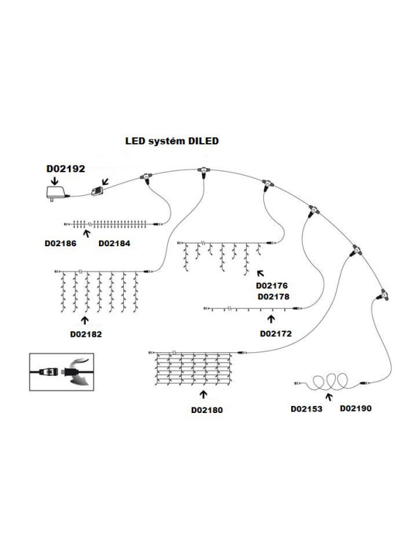 Systém vianočného osvetlenia diLED je jedinečný vďaka mnohým možnostiam napájania a rozšírenia reťazí. Môžete si vybrať z celej ponuky, reťaze na seba vzájomne napájať a vďaka ovládaču pridávať aj svetelné funkcie. Systém diLED sa už kvalitou približuje profesionálnemu osvetleniu. Priemerná životnosť LED žiaroviek je približne 50 000 hodín svietenia.