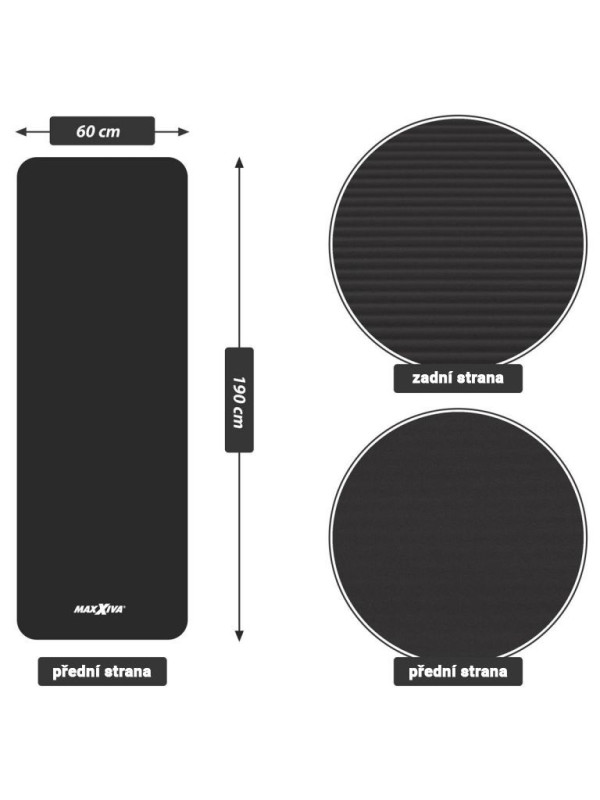 MAXXIVA gymnastická podložka, čierna, 190 x 60 x 1,5 cm