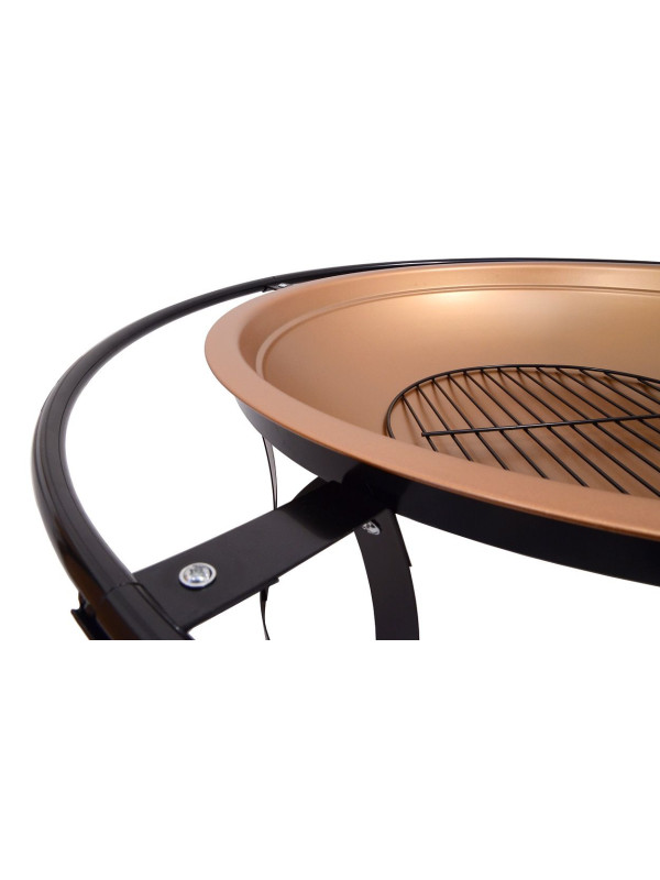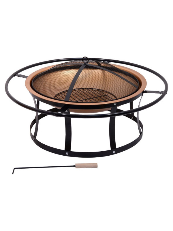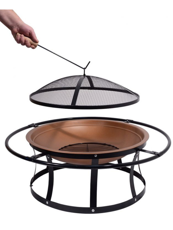 Špeciálne tvarovaný poklop s pletivom poslúži ako ochrana pred iskrami, čo výrazne zvyšuje bezpečnosť a pohodlie. Priložený je aj kovový kutáč s drevenou rukoväťou, ktorý môžete použiť na urovnanie ohňa, ale aj na ľahšie zloženie poklopu.