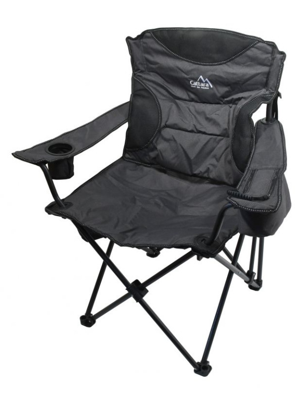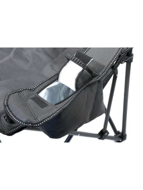 Stolička je ideálnym prostriedkom pre pohodlné posedenie pri vode, v prírode, ale aj pri odpočinku na záhrade. Je vybavená kvalitne zošitým poťahom a polstrovanými rukoväťami. Rukoväte sú doplnené o držiak na pitie a praktickú tašku na drobnosti. Nosná konštrukcia je dostatočne pevná.
