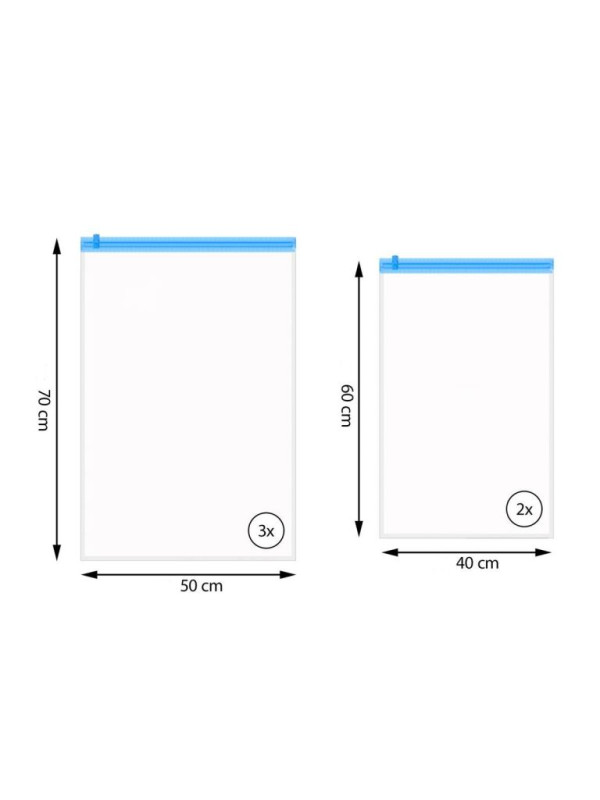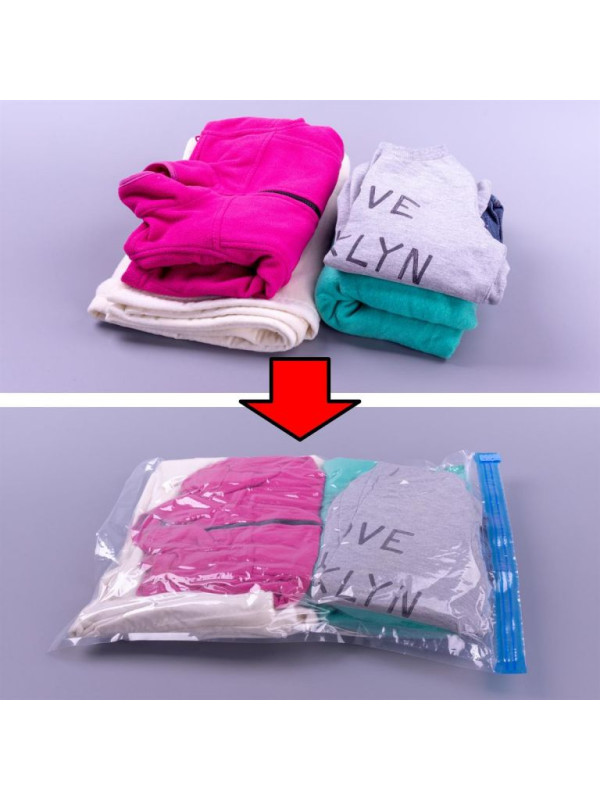 Vďaka modernej tesniacej technike sáčky spoľahlivo udržujú vzduch trvale a opakovane. Textílie vo vákuovom vaku sú chránené proti škodlivým vplyvom prostredia ako je vlhkosť, pachy, škodcovia alebo plesne. Vákuové sáčky vytvárajú miesto vo Vašom šatníku alebo v cestovnom kufri. Či už doma v skrini, na uloženie sezónneho oblečenia alebo pri cestovaní. Naše vákuové sáčky sú praktickými pomocníkmi v domácnosti. Vrecká sú vyrobené z robustného transparentného plastu PA + PE.