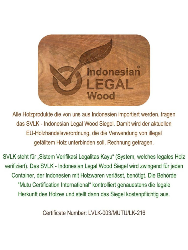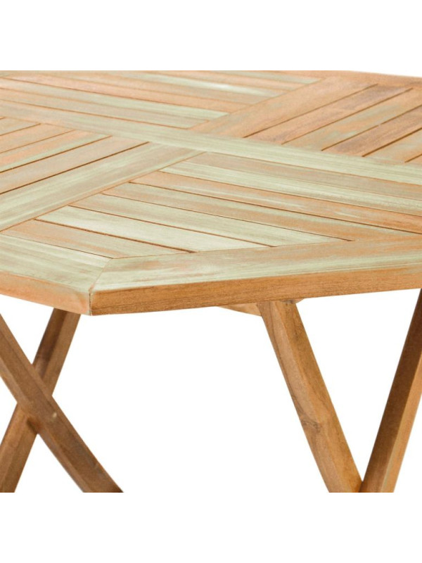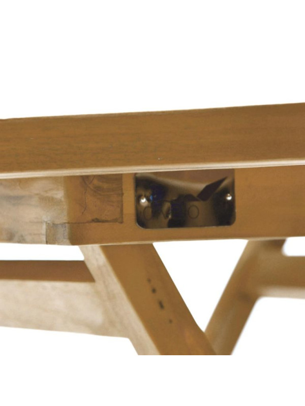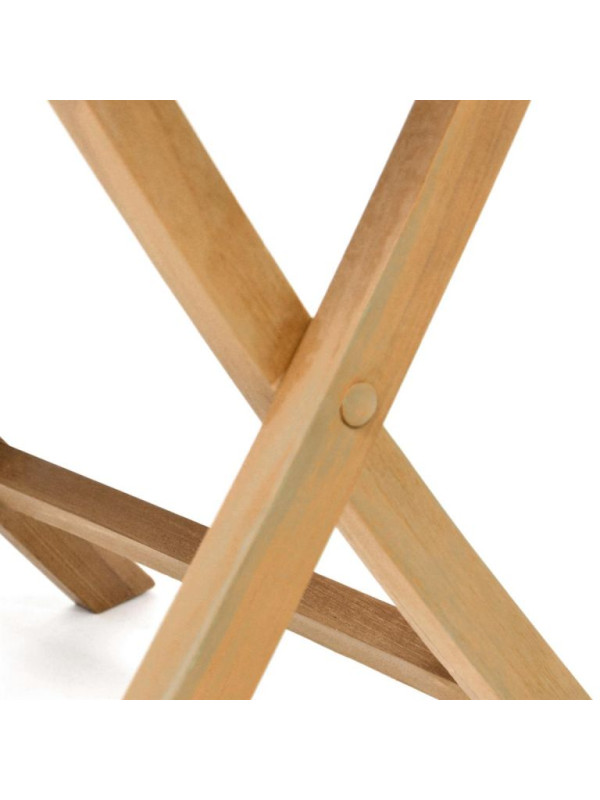 Drevený stôl sa dá ľahko zložiť, aby sa ušetrilo miesto, je vyrobený z tvrdého dreva odolného voči poveternostným vplyvom, je ošetrený a certifikovaný SVLK, t.j. drevo pochádza z trvalo udržateľného pestovania.