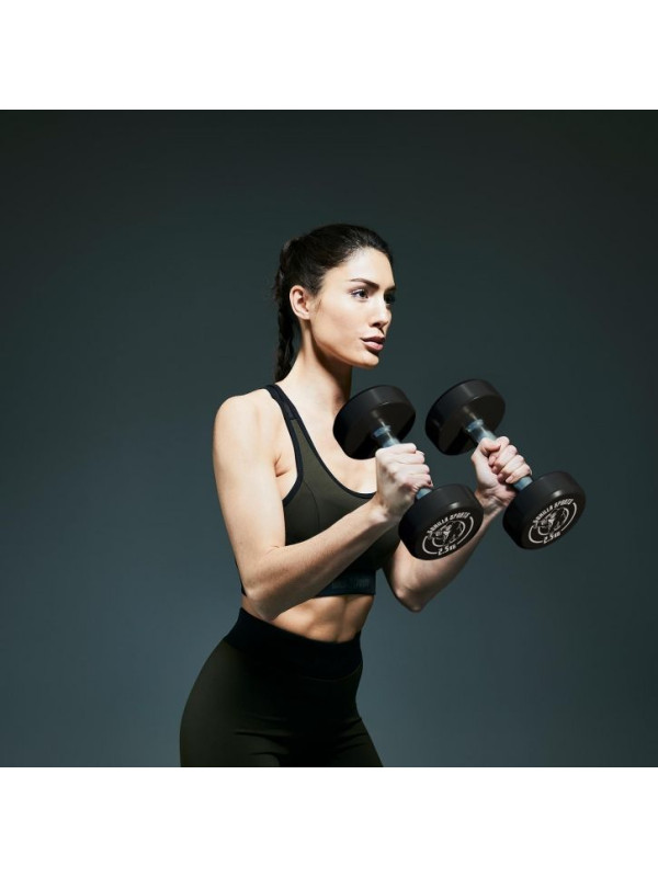 Vďaka veľkému počtu cvikov, ktoré s jednoručnou činkou môžete vykonávať, je váš tréningový úspech zaručený. Prispieva k tomu aj mnoho rôznych závaží. Liatinové jadro je obklopené silným gumovým plášťom. To prispieva nielen k pohodliu vašich cvičení, ale tiež zaisťuje, že chránite podlahu vašej tréningovej miestnosti, pokiaľ po tvrdom tréningu spadne činka z vašich spotených rúk. Skvelé farby s logom Gorilla Sports a vytlačeným číslom KG vás doslova povzbudia.