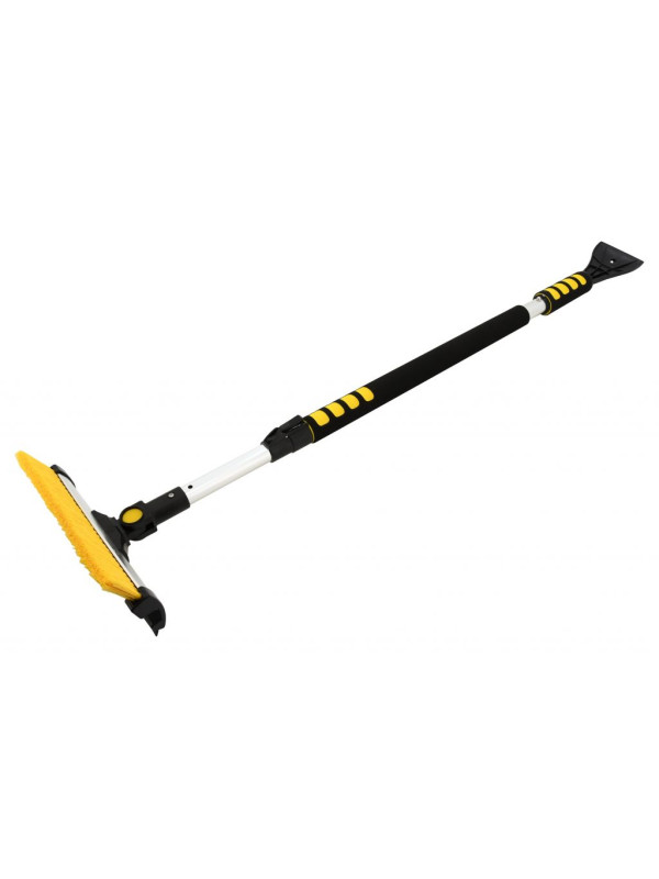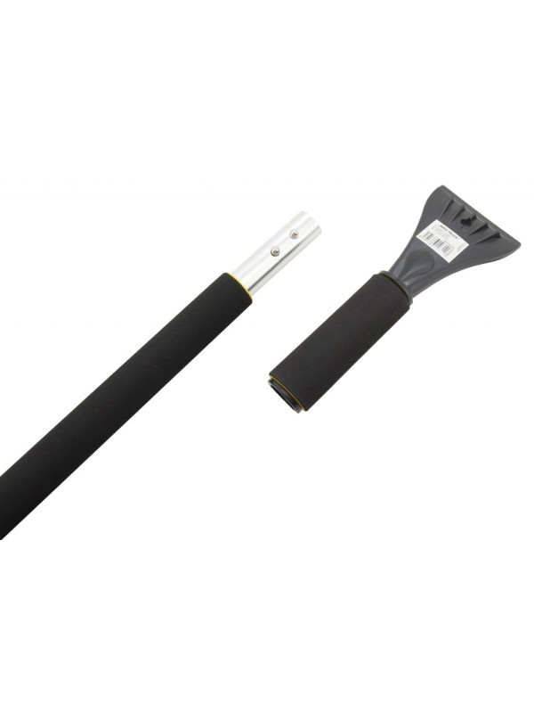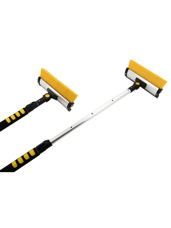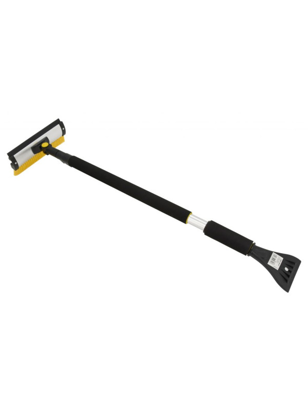 Robustná škrabka + stierka + metlička, ideálna pre nákladné vozidlá a autobusy. Hliníková konštrukcia, otočná stierka s metlou, odnímateľná škrabka na ľad. Teleskopická rukoväť. Rukoväť potiahnutá penovým krytom po celej dĺžke.