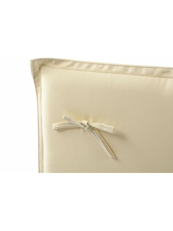 Kvalitná podložka na skladacie stoličky z ľahkého materiálu (bavlna, polyester) v krémovej farbe s odnímateľným poťahom. Ľahká údržba, umývateľná. Toto polstrovanie ponúka pohodlie na Vašej záhradnej stoličke. Pripevňovacie šnúrky zabraňujú skĺznutiu podložky. Vyniká veľmi dobrým spracovaním. Ani znečistenie nie je žiadny problém - poťah sa dá vďaka skrytému zipsu ľahko zložiť a vyprať.