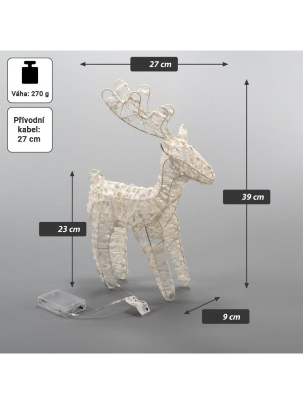 Voľne voliteľná funkcia časovača alebo nepretržitého svietenia. Vďaka prevádzke na batérie nie ste závislí na blízkosti elektrickej prípojky a môžete dekoratívnu figúrku umiestniť na širokom priestore.