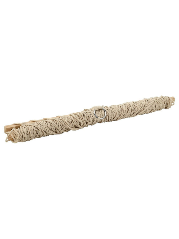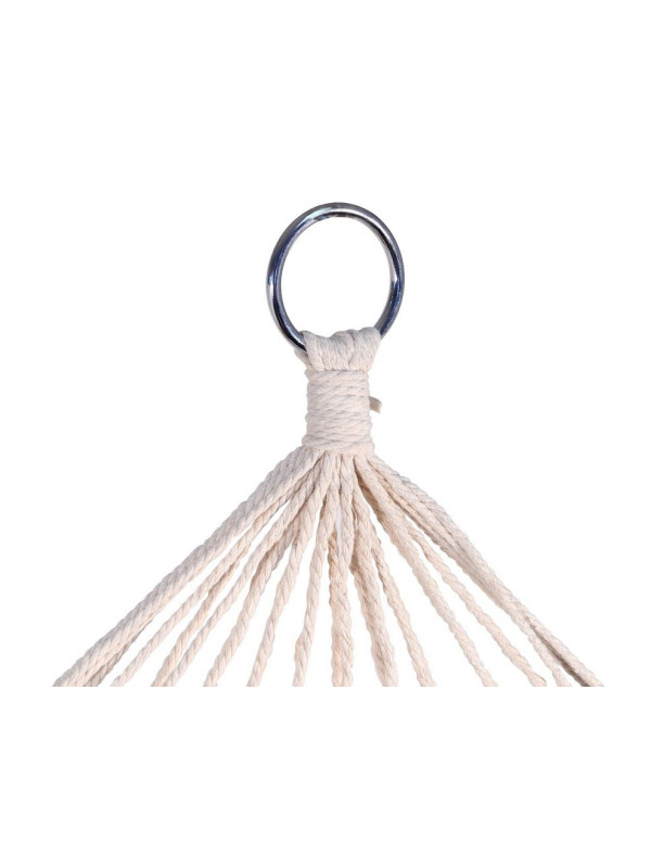 Sieť je na oboch koncoch osadená drevenými, rozpernými tyčami, ktoré zaisťujú vynikajúcu stabilitu a s ňou spojenú vysokú mieru pohodlia. Tyčami sú pretiahnuté 5 mm povrazy z mäkkého a pružného vlákna a konce povrazov sú zapletené do oceľových krúžkov určených na zavesenie.