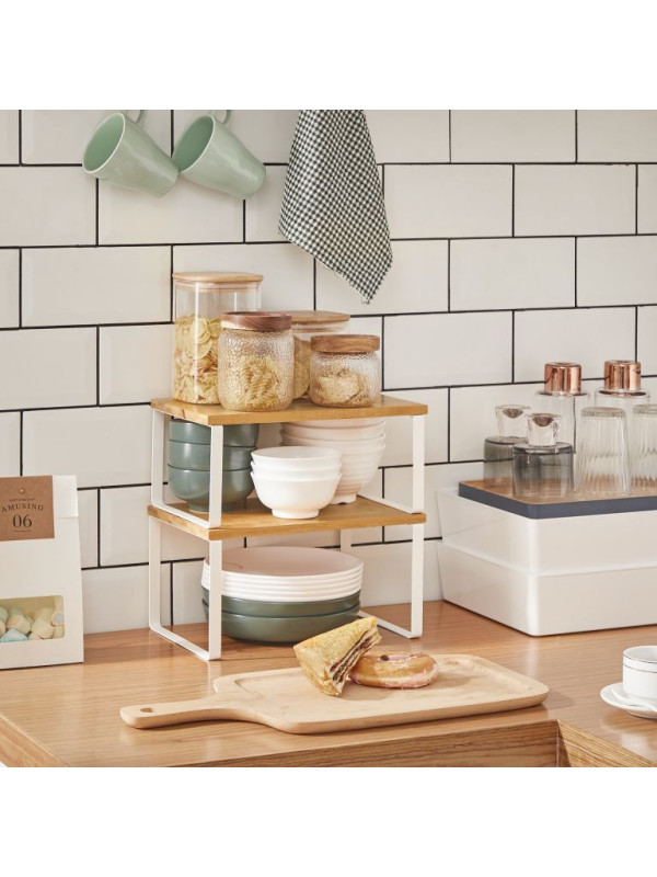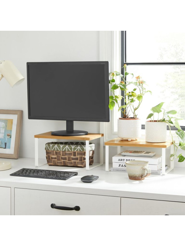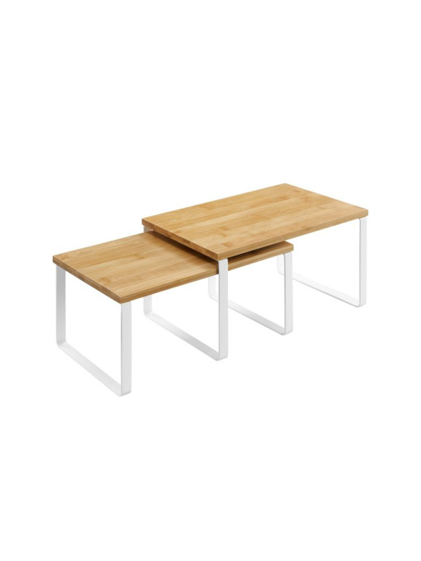 SONGMICS poličky do kuchyne, 2 ks, kov a bambus, biela/príro
