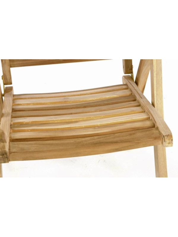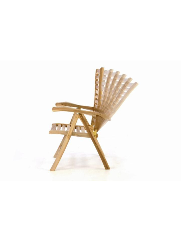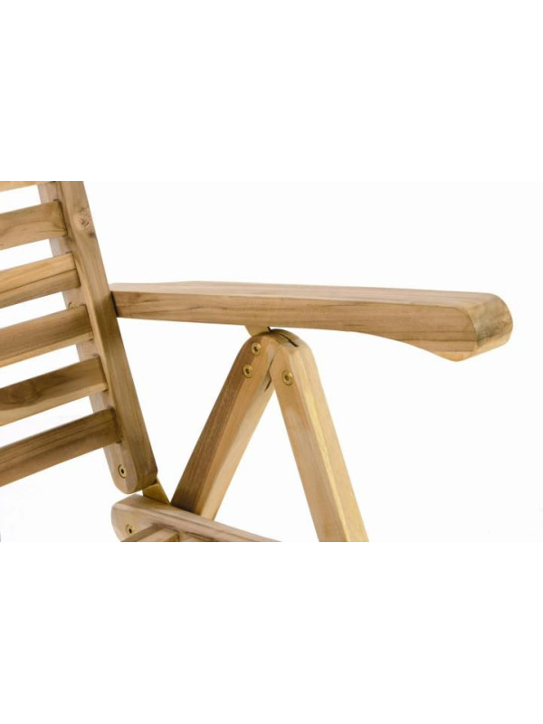 Masívne sklopné kreslo zhotovené z kvalitného, počasiu odolného, ošetreného teakového dreva. Stolička má vysokú opierku chrbta, nastaviteľnú do 6-tich polôh. Je perfektná na terasu alebo záhradu k príjemne strávenému letnému večeru s priateľmi alebo v rodinnom kruhu. Stolička je sklopná a umožňuje tak ľahké uskladnenie. Produkt, ktorý Vás nadchne pomerom cena / výkon.