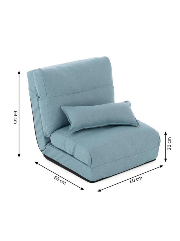 Toto kreslo je vhohné pre každú príležitosť. Naša podlahová pohovka je nielen útulným a štýlovým sedadlom, ale môže byť premenená aj na pohodlnú posteľ v niekoľkých jednoduchých krokoch. Ponúka úžasný pocit zo sedenia a ležania, je individuálne nastaviteľná, a preto je ideálna ako herná alebo meditačná stolička. Všestrannú pohovku pre jednotlivcov môžete zložiť, aby sa ušetrilo miesto, a je preto vhodná najmä pre malé byty a izby. Vďaka použitej ľahkej konštrukcii má kreslo nízku hmotnosť a možno s ním bez námahy a bez poškodenia podlahy manipulovať.