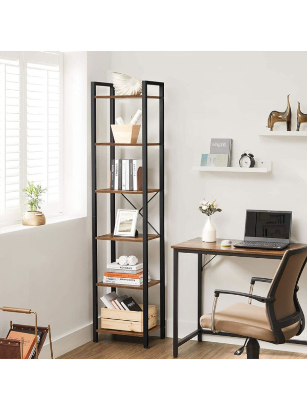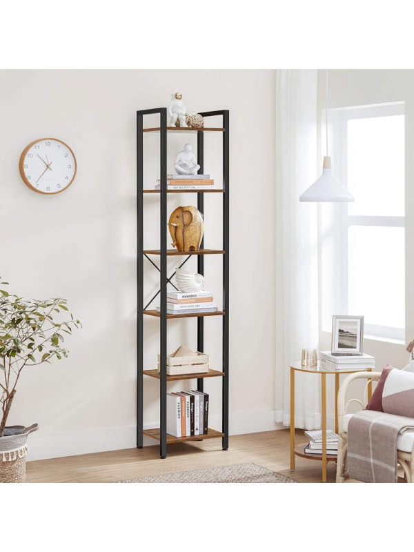 VASAGLE knižnica 6 políc, rustikálna hnedá/čierna