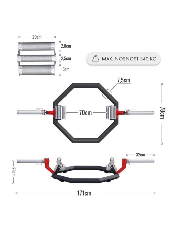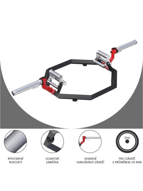 Hex osa Vám pomôže urobiť tréning s činkami ešte univerzálnejším. S pomocou tejto osi sú vaše chrbátia zvyčajne menej namáhané - ak cviky vykonávate čisto a správne. Počas tréningu sa sila čerpá zo svalových skupín, odkiaľ by mala pochádzať. Efektívny tréning mŕtveho ťahu a drepov, ktoré chránia vaše kĺby. Ruky zostávajú v neutrálnej polohe, aby ste sa mohli lepšie sústrediť na čisté vykonanie cvikov. Často je tiež možné trénovať s o niečo väčšou váhou a takisto viac zaťažovať nohy, než by tomu bolo pri klasickom mŕtvom ťahu. Pri klasickom mŕtvom ťahu niekedy hrozí veľké riziko prílišného zaťaženia chrbta. Tomu sa zvyčajne dá čeliť použitím viacstrannej osy. Vďaka špeciálnemu tvaru je často možné zostať počas tréningu v vzpriamenej polohe a presunúť ťažisko. Môžete si tiež vybrať rôznu hrúbku úchopu. Z používania tejto osy môžu ťažiť ako začiatočníci, tak pokročilí športovci. Najmä tí, ktorí ešte nie sú príliš oboznámení s tréningovým postupom mŕtveho ťahu, našli v tejto osi vhodnú možnosť, ako urobiť prvý krok a dosiahnuť tréningové úspechy. Ak chcete, môžete tento typ zariadenia zaradiť aj do kruhového tréningu.