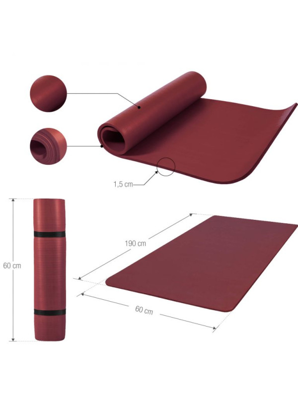 Gorilla Sports Podložka na jogu, 190 x 60 cm, vínová