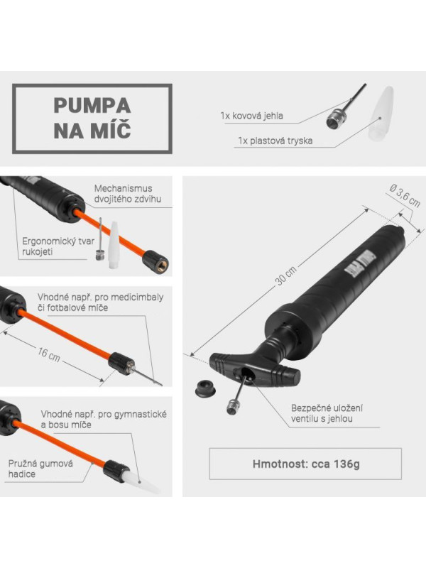 Gorilla Sports Pumpička na loptu, čierna, 30 cm