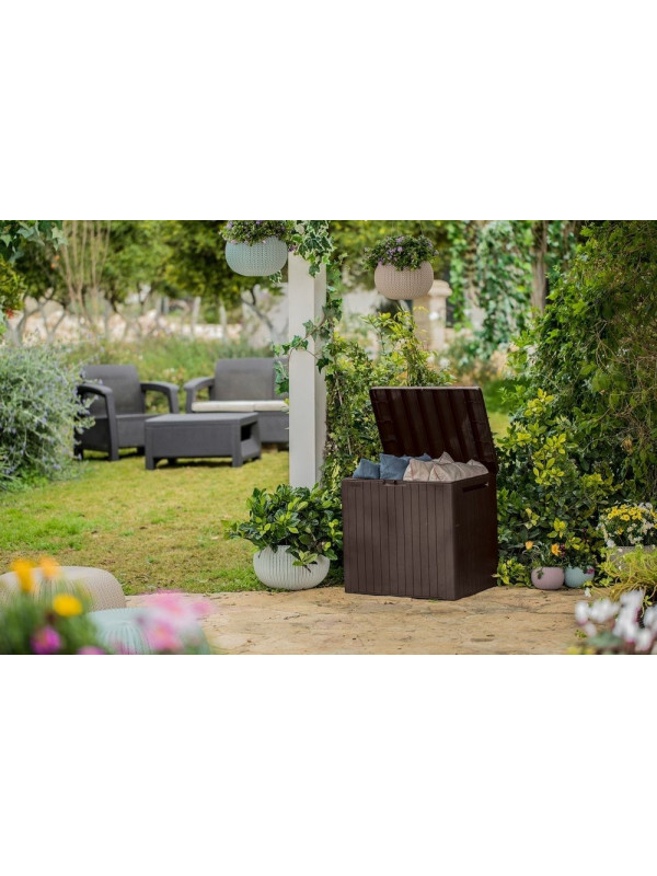 Výhodou tohto boxu je jednoduchá montáž (bez využitia náradia - všetko zložíte ako stavebnicu), vysoká kvalita boxu a moderný dizajn. Materiál má UV ochranu a je odolný nepriazni počasia. Úložný box možno využiť aj ako dizajnový stolček.