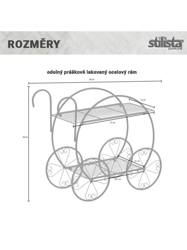 STILISTA stojan na rastliny, vozík, 66 x 60 x 28 cm, oceľ