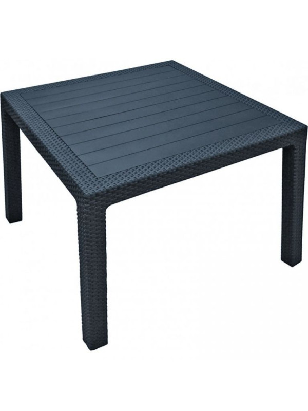 Štvorcový plastový stôl od firmy KETER. Moderný vzhľad - imitácia ratanovej štruktúry. Stôl je vhodný k usadeniu až 4 osôb. Stôl je odolný voči nepriazni počasia aj UV žiareniu. Jednoduchá údržba!